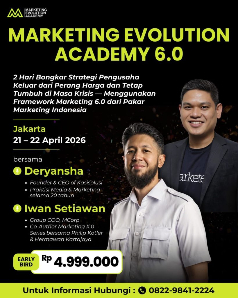 Marketing Evolution 6.0 adalah ruang strategi eksklusif untuk Founder dan Decision Maker.